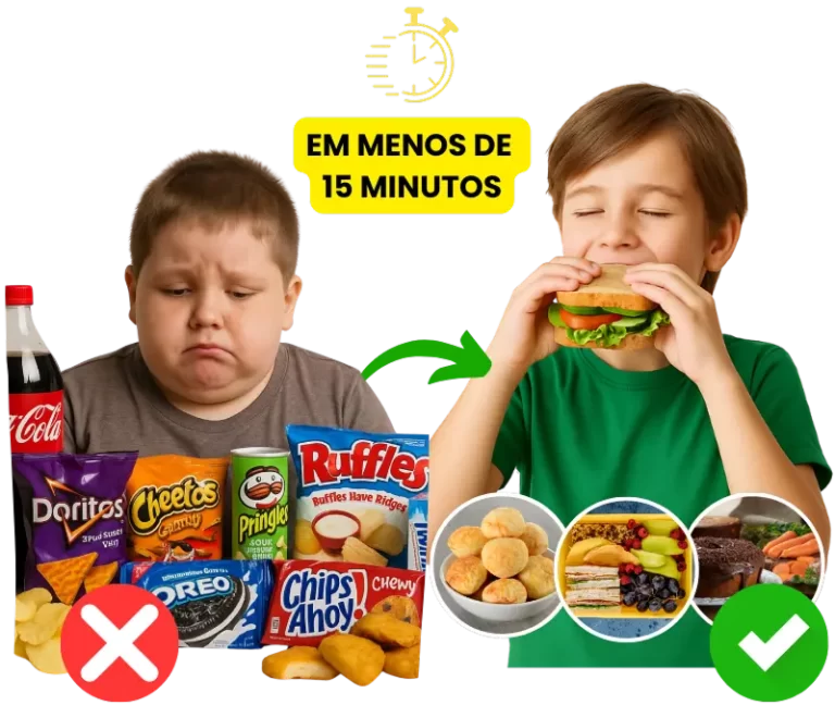 Faça versões saudáveis das comidas que seu filho ama. Sem açúcar, sem glúten e prontas em minutos. Assim, você mata a vontade dele de “besteira” sem sair da alimentação saudável.